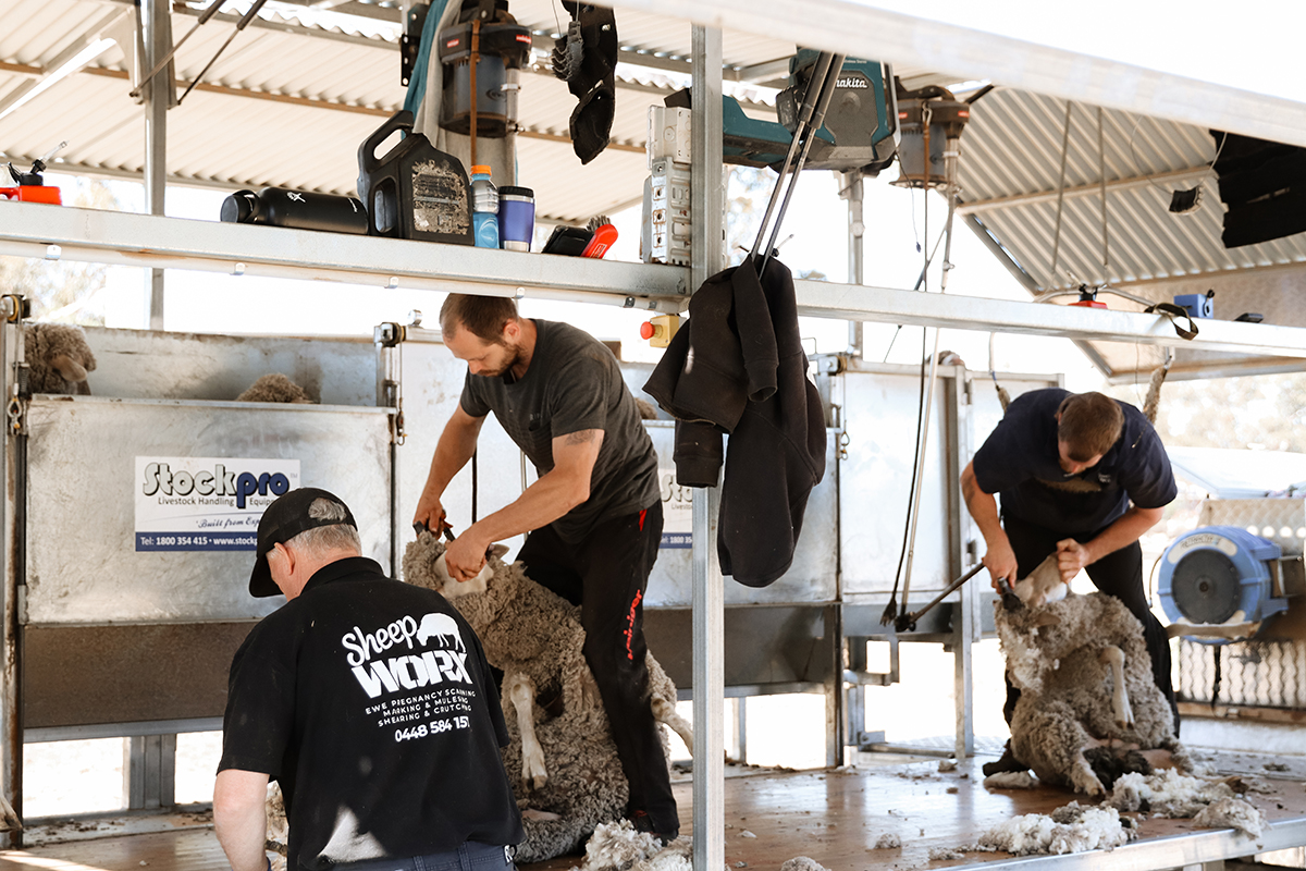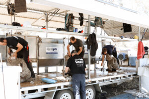Don’t have a shearing shed’? No problem! We own a Stockpro Shearing/Crutching trailer so we can set up wherever is needed to get your job done.